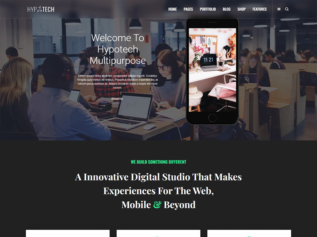 This theme is designed for many multipurposes of web like creative agency, shop, digital, personal and much more.